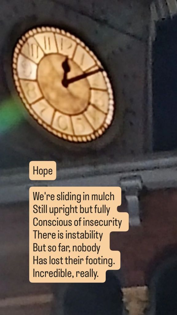 New Year! Posted bylateralgpoet2nd Jan 2026Posted inUncategorized Share this: Click to share on X (Opens in new window) X Click to share on Facebook (Opens in new window) Facebook Like Loading... Related Published by lateralgpoet Nomad, outlaw, womble. View more posts
